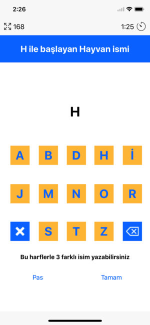 Oyun, isim-şehir oyununun tek başına oynanan hali. Bir grup harf ve tek bir kelime ile başlayan oyun, her aşamada farklı bir istek ile sorularını iletiyor ve cevap verilmesini bekliyor. Olası kelimelerin sayısı belli olduğundan bu kelimelerden birisini yazmak gerekiyor. G ile başlayan şehir için Giresun ve Gaziantep yazmak gibi. Belirli bir süre içerisinde sorular iletiliyor ve olabildiğince çok cevap verilmesi bekleniyor. Verilen cevapların hızına göre de puan belirleniyor ve oyun sona eriyor. Her ne kadar grup ile oynanan isim şehir oyununun zevkini vermese de çocuklar için iyi bir kelime öğrenim aracı olarak kullanılabilir.